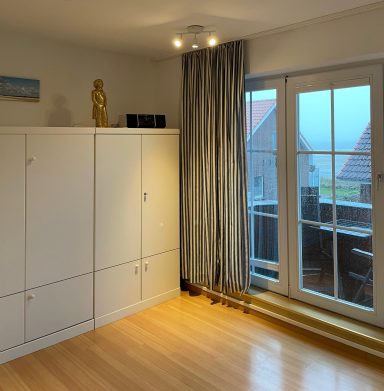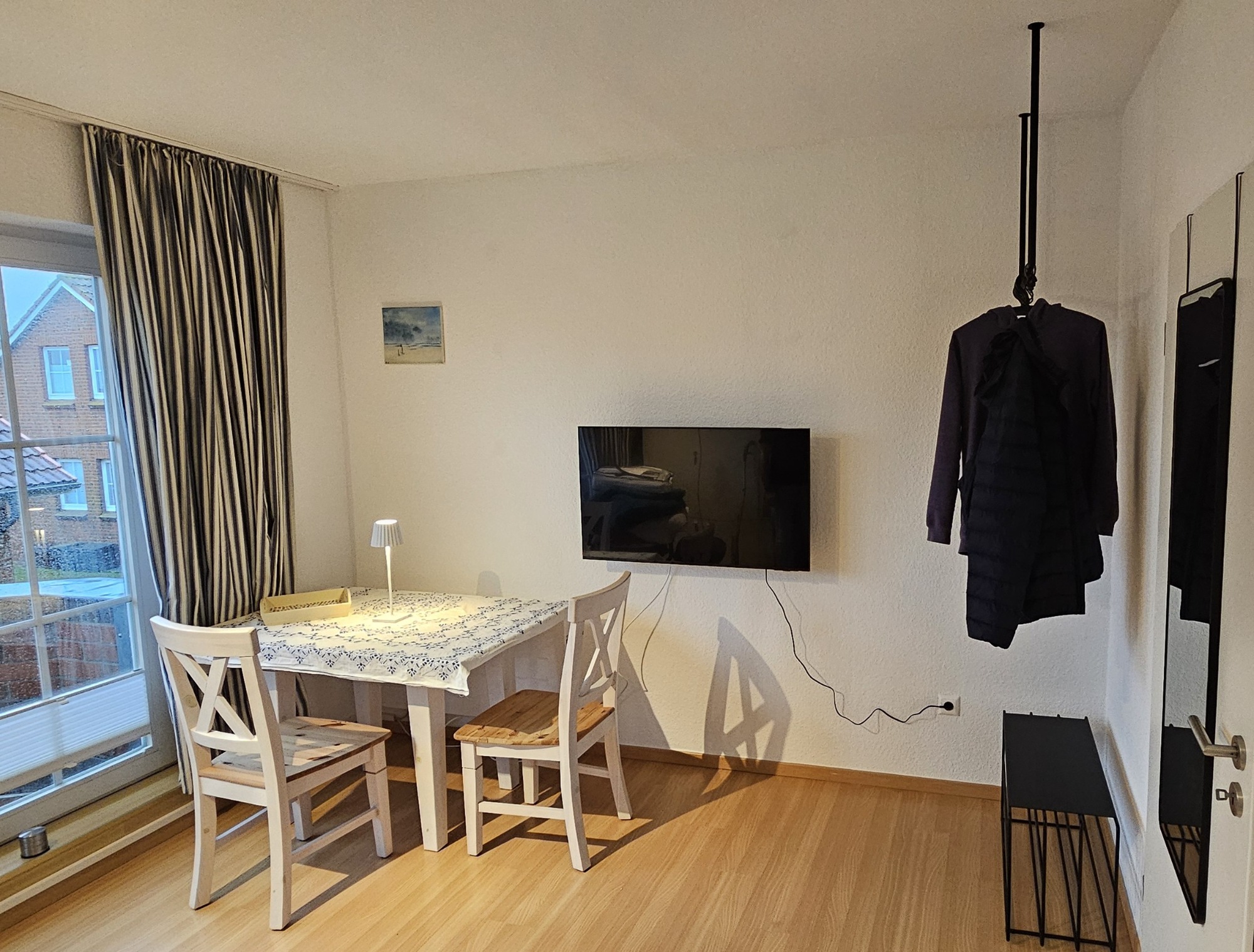 Unsere gemütliche Einzimmer-Ferienwohnung auf Amrum bietet auf 21 m² alles für eine entspannte Auszeit: einen Südbalkon, eine praktische Pantryküche und einen charmanten Esstisch – ideal für ein Paar. Durch die Südlage und den Balkon fällt viel Licht in den Raum – perfekt zum Abschalten nach einem langen Strandspaziergang.
