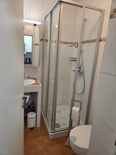 Die helle Einzimmerwohnung ist durchdacht und liebevoll ausgestattet. Im Wohn- und Schlafbereich erwartet Sie ein komfortables, hochwertiges Klappbett mit einer Liegefläche von 1,60 x 2,00  m – ideal für eine oder zwei Personen. Ein geräumiger Kleiderschrank, zusätzliche Regalfächer und ausreichend Stauraum sorgen dafür, dass alles seinen Platz findet.